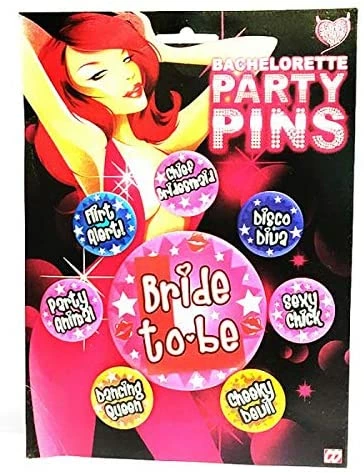 Throw these pin-back pins on your clothing, pin them to your fabric of choice, add them to any DIY art project, or put them on your backpack and make your statement. This set of bachelorette party button pins are for the bride-to-be, maid of honor and bridesmaids to wear when they go out to party