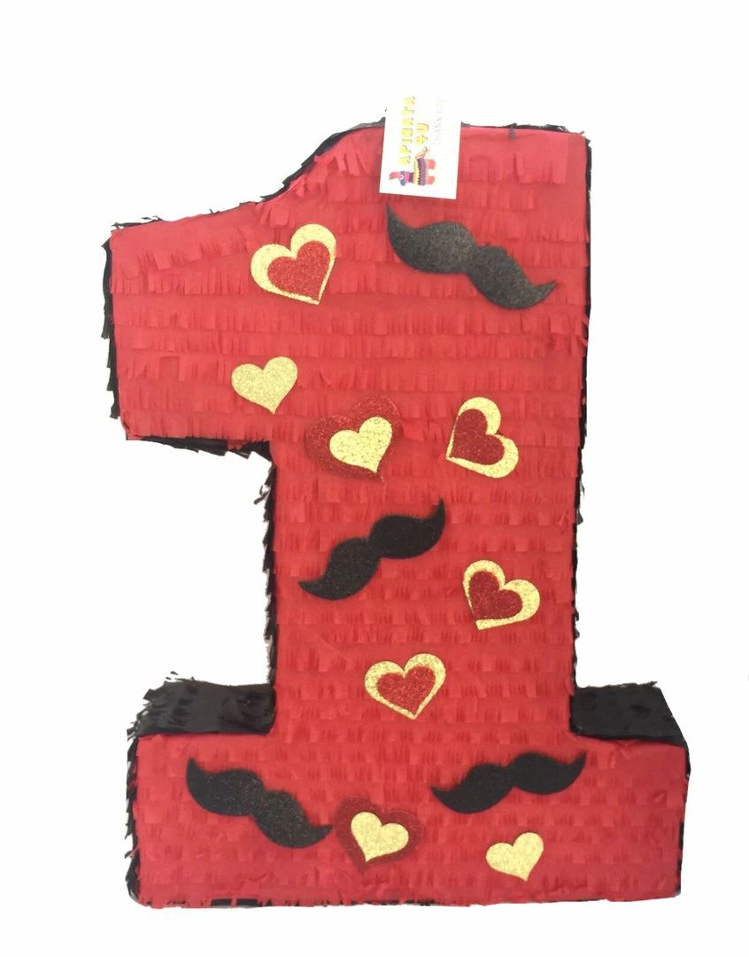APINATA4U Childrens Large Number One Pinata Red Color With Mustache And Hearts Decorations