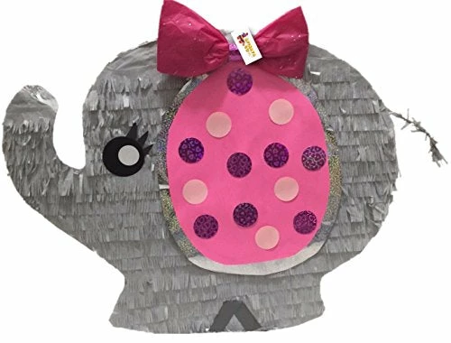 APINATA4U It’s A Girl Pink And Gray Baby Elephant Pinata For Baby Shower Childrens