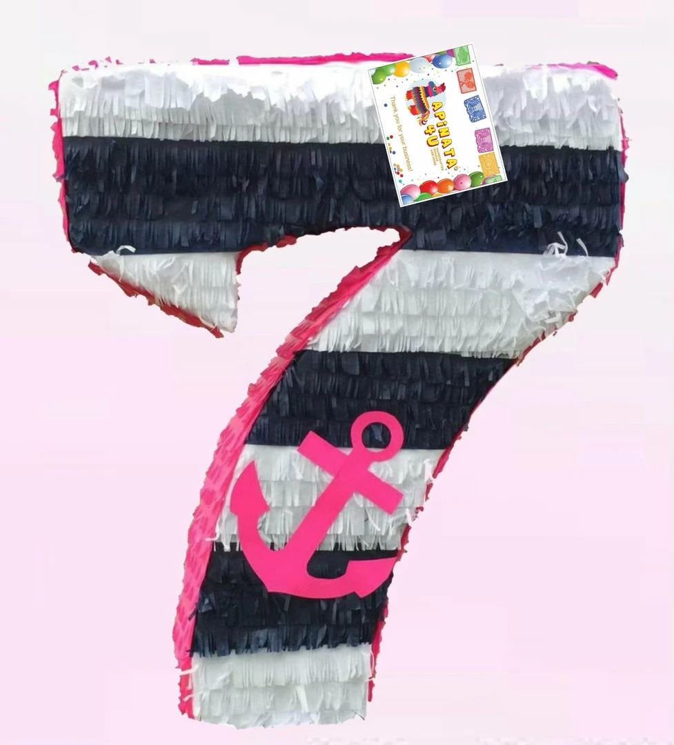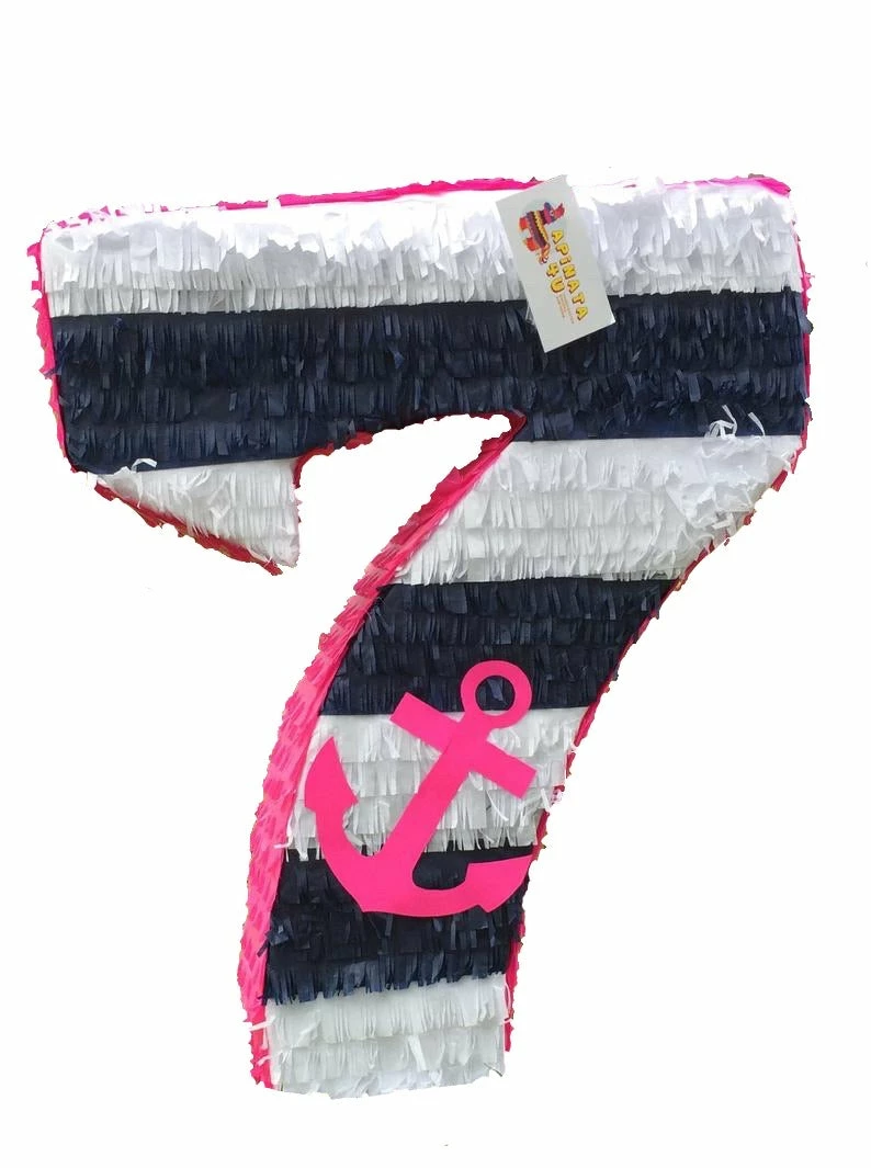 APINATA4U Large Number Seven Piñata Nautical Themed Seventh Birthday Party Number 7 Piñata Photo Prop Childrens