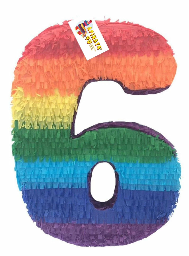 APINATA4U Large Number Six Pinata Rainbow Colors