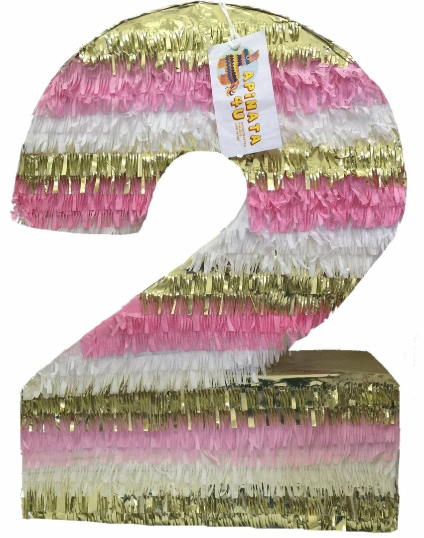 APINATA4U Large Pink Gold & White Number Two Pinata 24″ Tall Childrens