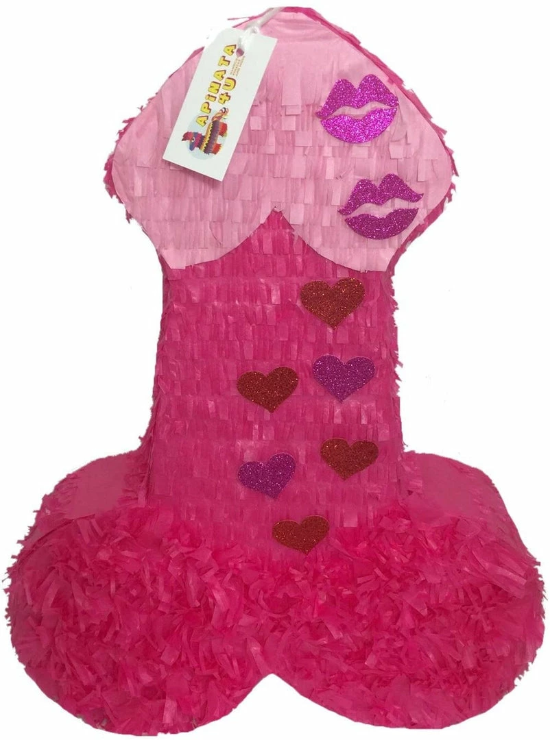 APINATA4U LLC – Large Penis Adult Pinata | Hot Pink With Glitter Kisses | Ideal For Bachelorette Party | Made With High Quality Cardboard | Party & Game | Size – 2ft Approx | Easy To Use & Fill Adult Pinatas