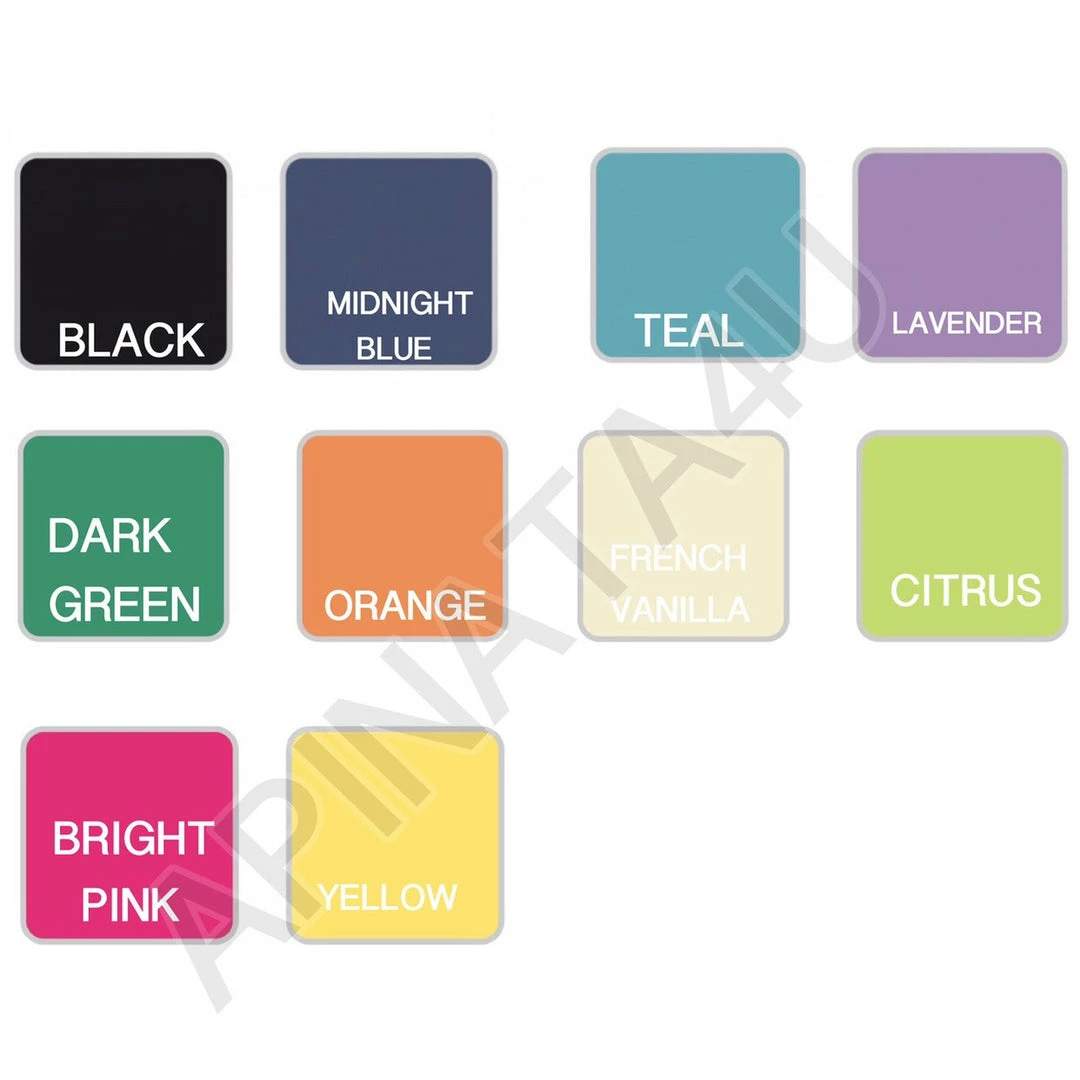 | Color | Black, Brown, Copper, Orange, White, Red, Yellow, Purple, Gray, Bright Green, Dark Green, Light Pink, Bubble Gum Pink, Hot Pink, Royal Blue, Navy Blue, Sky Blue, Bright Blue, Light Cream, Tan, Lavender |