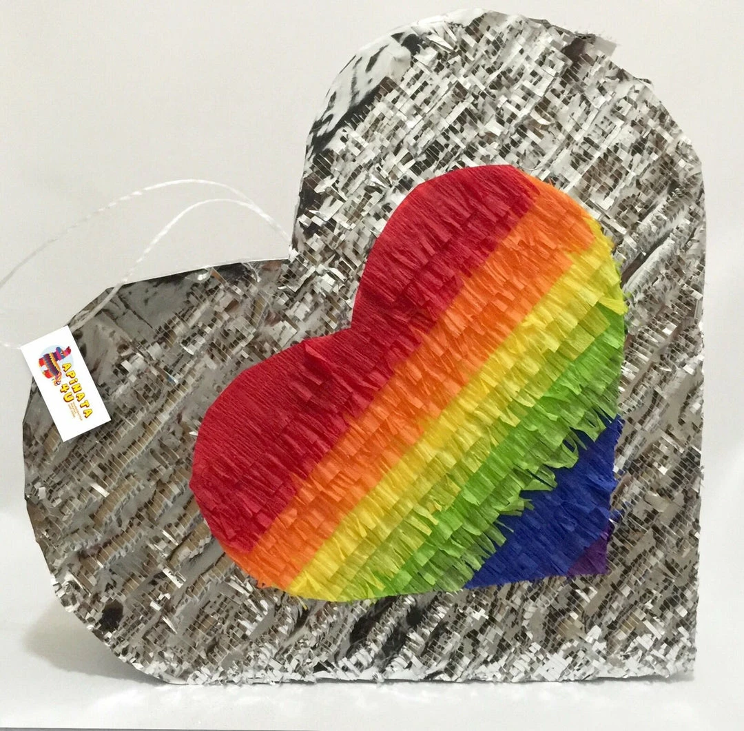 Other Custom Themes Pinatas APINATA4U Silver & Rainbow Heart Pinata LGBT Party Supplies